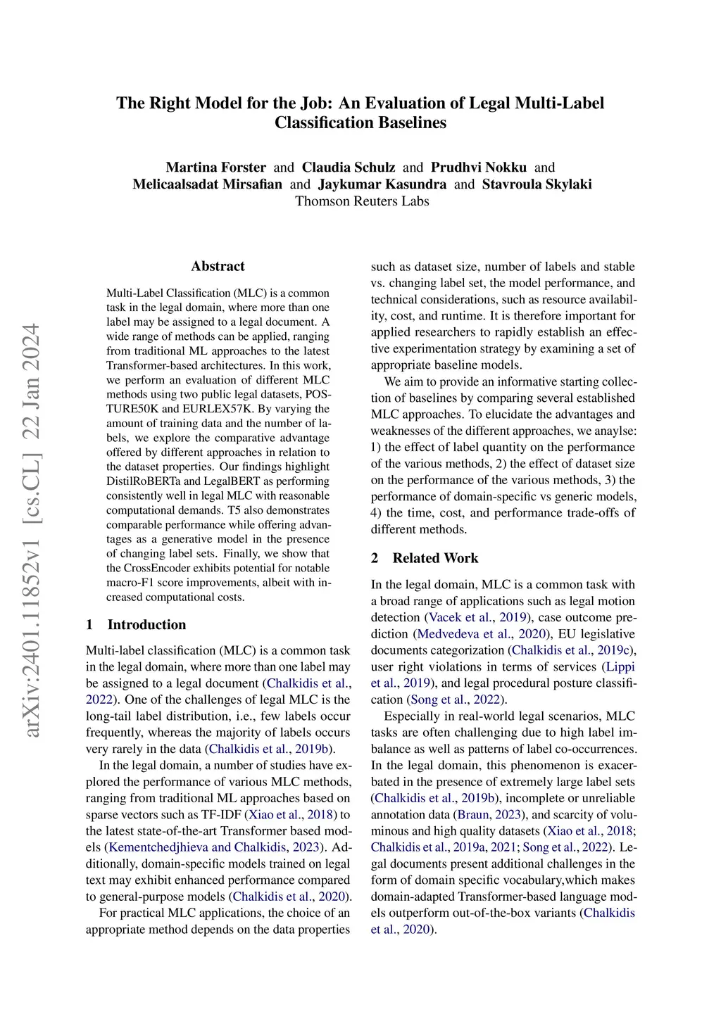 The Right Model for the Job: An Evaluation of Legal Multi-Label