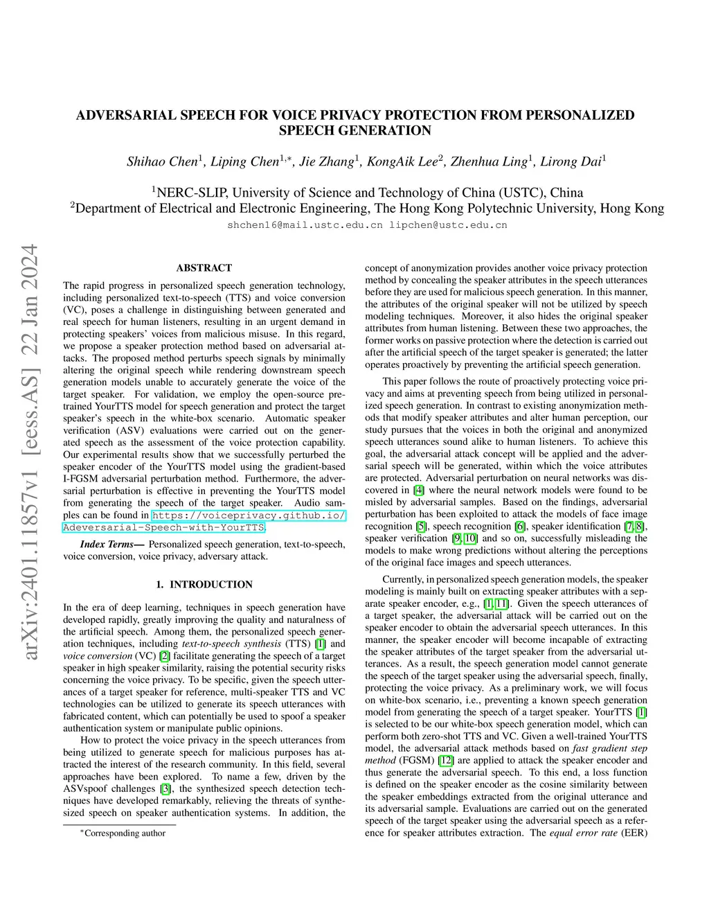 Adversarial speech for voice privacy protection from Personalized Speech
