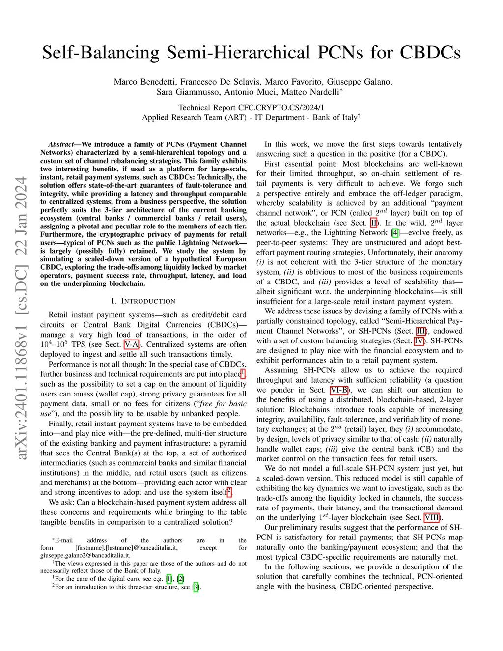 Self-Balancing Semi-Hierarchical PCNs for CBDCs
