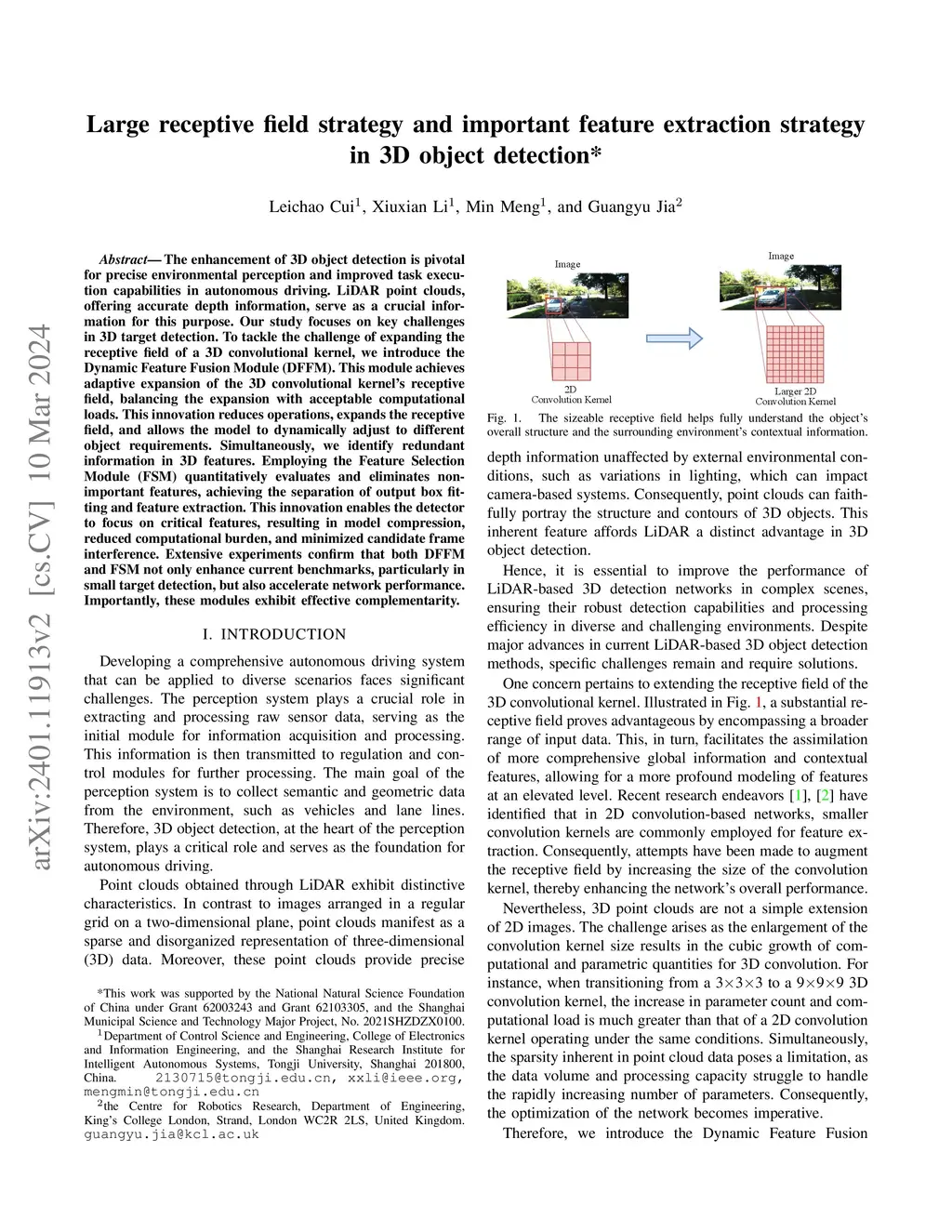 The enhancement of 3D object detection is pivotal for precise environmental perception and improved task execution capabilities in autonomous driving. LiDAR point clouds, offering accurate depth information, serve as a crucial information for this purpose. Our study focuses on key challenges in 3D target detection. To tackle the challenge of expanding the receptive field of a 3D convolutional kernel, we introduce the Dynamic Feature Fusion Module (DFFM). This module achieves adaptive expansion of the 3D convolutional kernel's receptive field, balancing the expansion with acceptable computational loads. This innovation reduces operations, expands the receptive field, and allows the model to dynamically adjust to different object requirements. Simultaneously, we identify redundant information in 3D features. Employing the Feature Selection Module (FSM) quantitatively evaluates and eliminates non-important features, achieving the separation of output box fitting and feature extraction. This innovation enables the detector to focus on critical features, resulting in model compression, reduced computational burden, and minimized candidate frame interference. Extensive experiments confirm that both DFFM and FSM not only enhance current benchmarks, particularly in small target detection, but also accelerate network performance. Importantly, these modules exhibit effective complementarity.