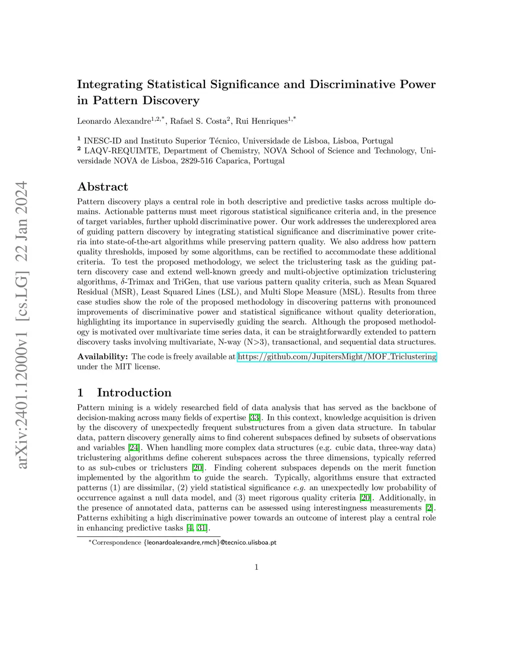 Pattern discovery plays a central role in both descriptive and predictive tasks across multiple domains. Actionable patterns must meet rigorous statistical significance criteria and, in the presence of target variables, further uphold discriminative power. Our work addresses the underexplored area of guiding pattern discovery by integrating statistical significance and discriminative power criteria into state-of-the-art algorithms while preserving pattern quality. We also address how pattern quality thresholds, imposed by some algorithms, can be rectified to accommodate these additional criteria. To test the proposed methodology, we select the triclustering task as the guiding pattern discovery case and extend well-known greedy and multi-objective optimization triclustering algorithms, -Trimax and TriGen, that use various pattern quality criteria, such as Mean Squared Residual (MSR), Least Squared Lines (LSL), and Multi Slope Measure (MSL). Results from three case studies show the role of the proposed methodology in discovering patterns with pronounced improvements of discriminative power and statistical significance without quality deterioration, highlighting its importance in supervisedly guiding the search. Although the proposed methodology is motivated over multivariate time series data, it can be straightforwardly extended to pattern discovery tasks involving multivariate, N-way (N>3), transactional, and sequential data structures. Availability: The code is freely available at https://github.com/JupitersMight/MOF_Triclustering under the MIT license.