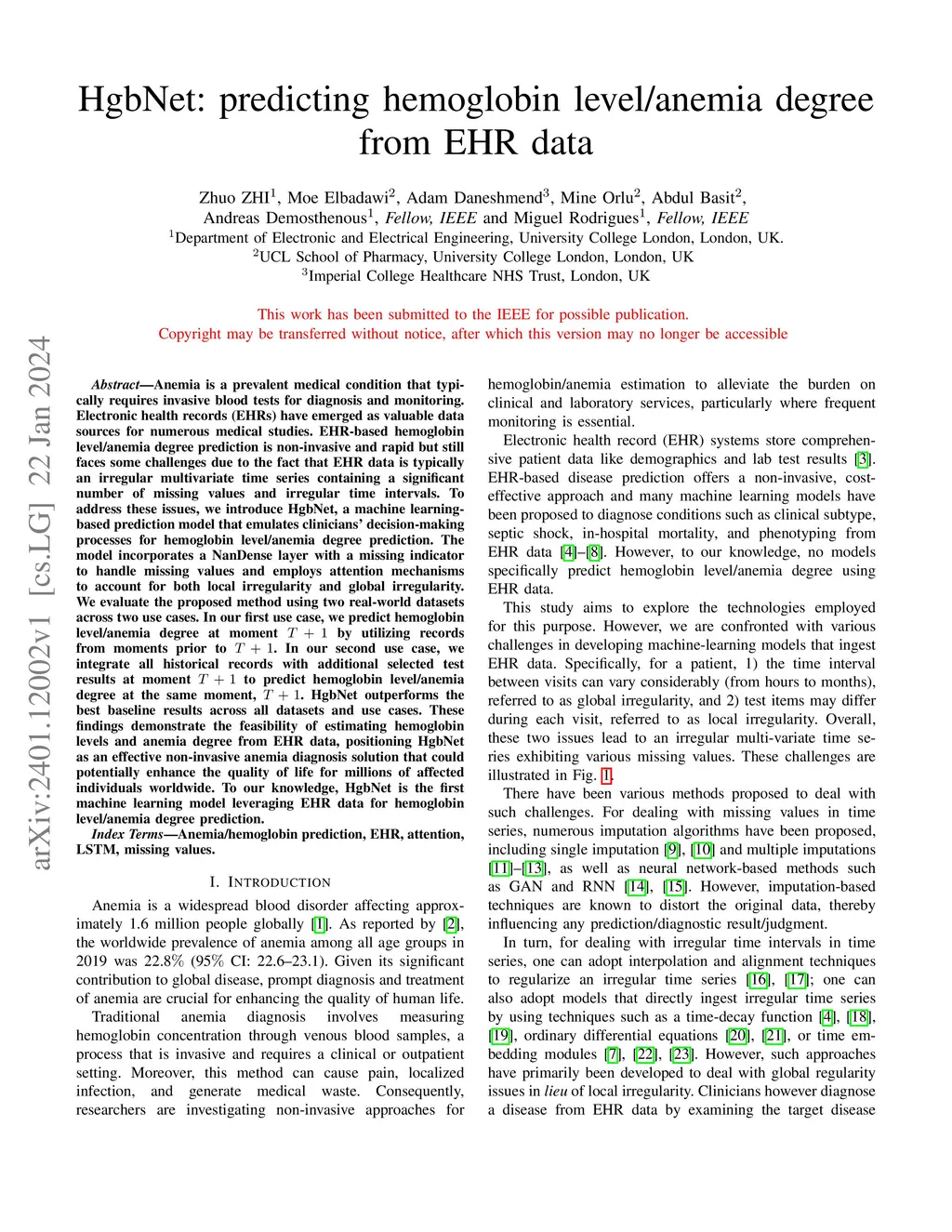 HgbNet: predicting hemoglobin level/anemia degree from EHR data