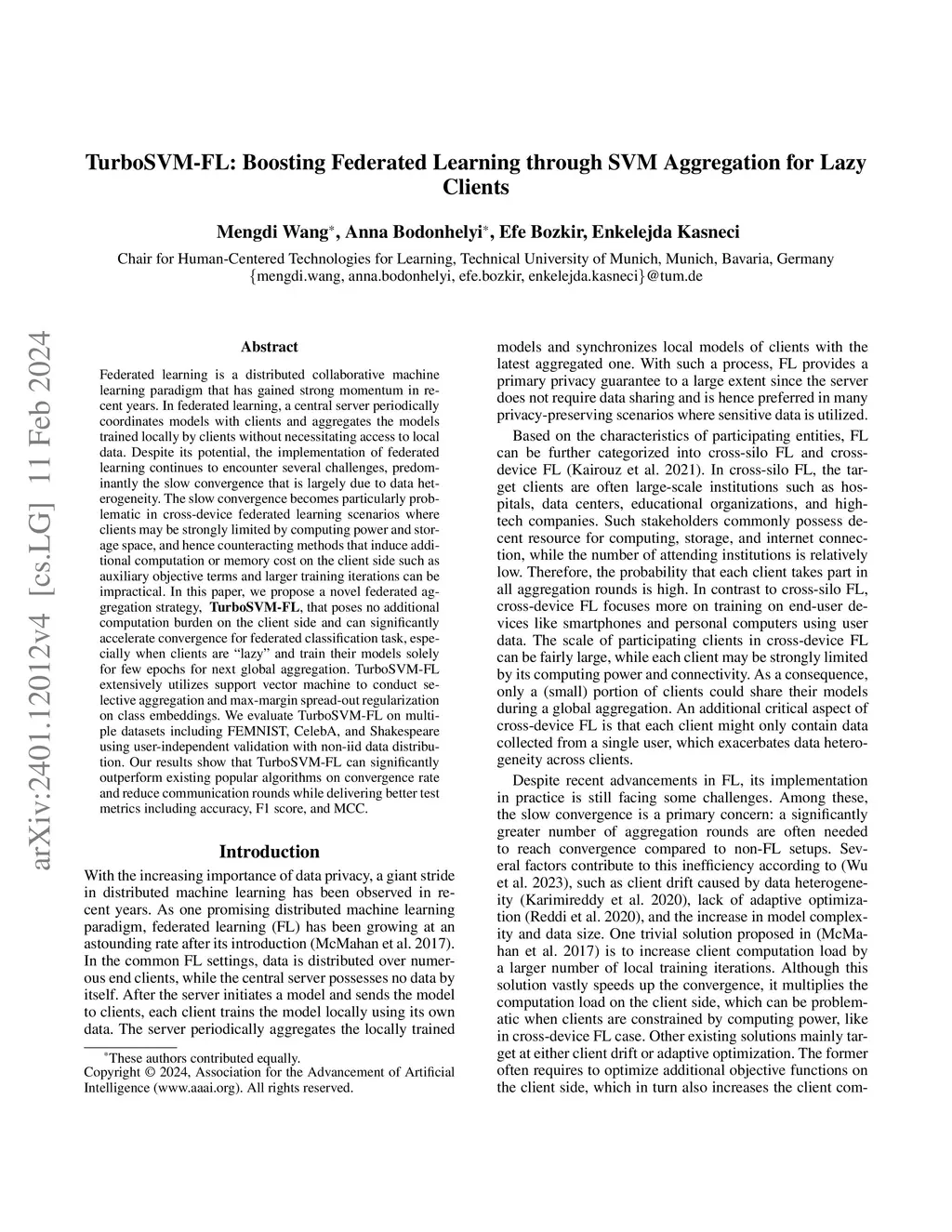 TurboSVM-FL: Boosting Federated Learning through SVM Aggregation for Lazy Clients