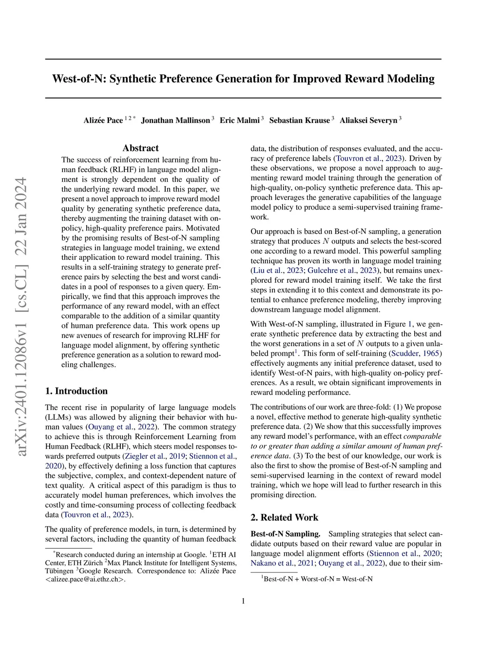 West-of-N: Synthetic Preference Generation for Improved Reward Modeling