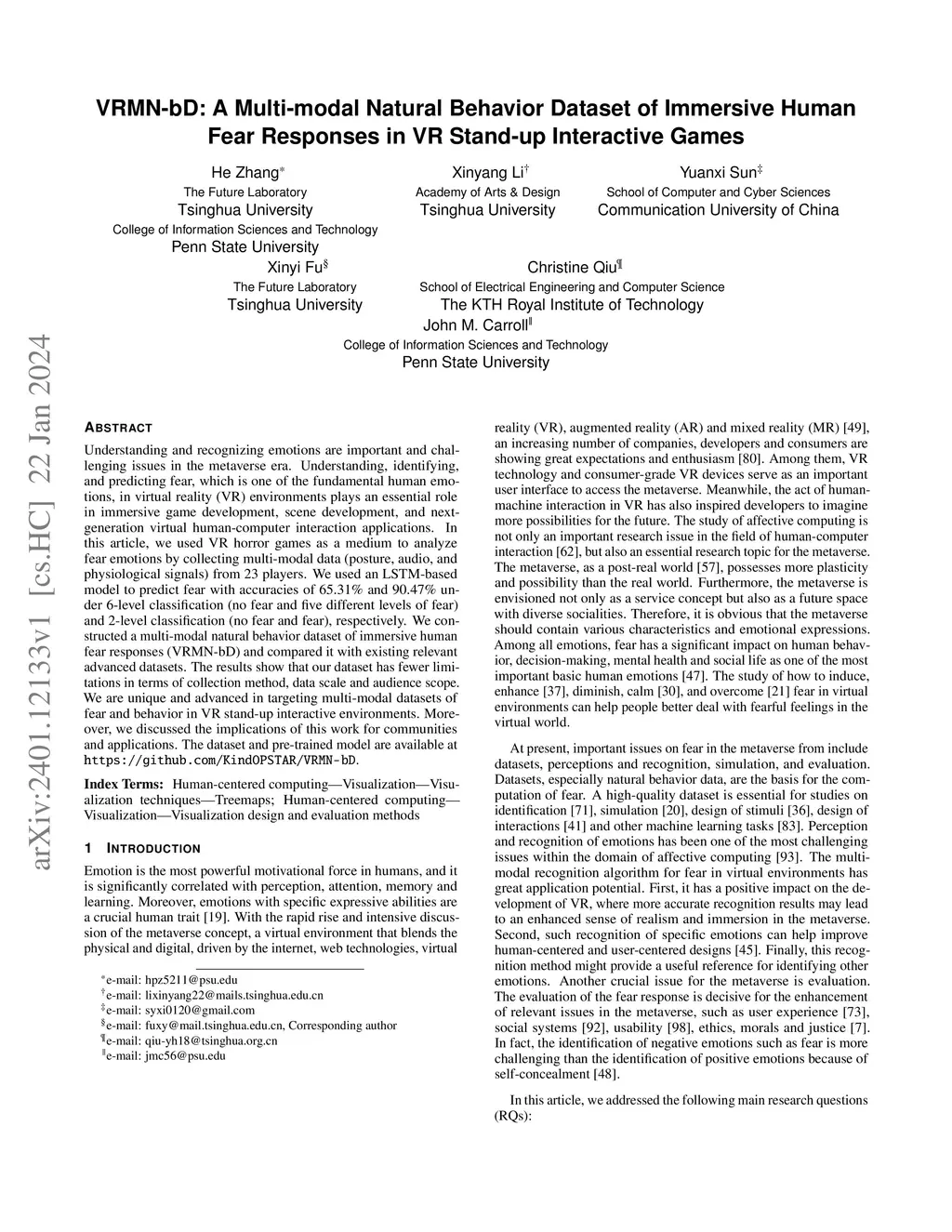 VRMN-bD: A Multi-modal Natural Behavior Dataset of Immersive Human Fear