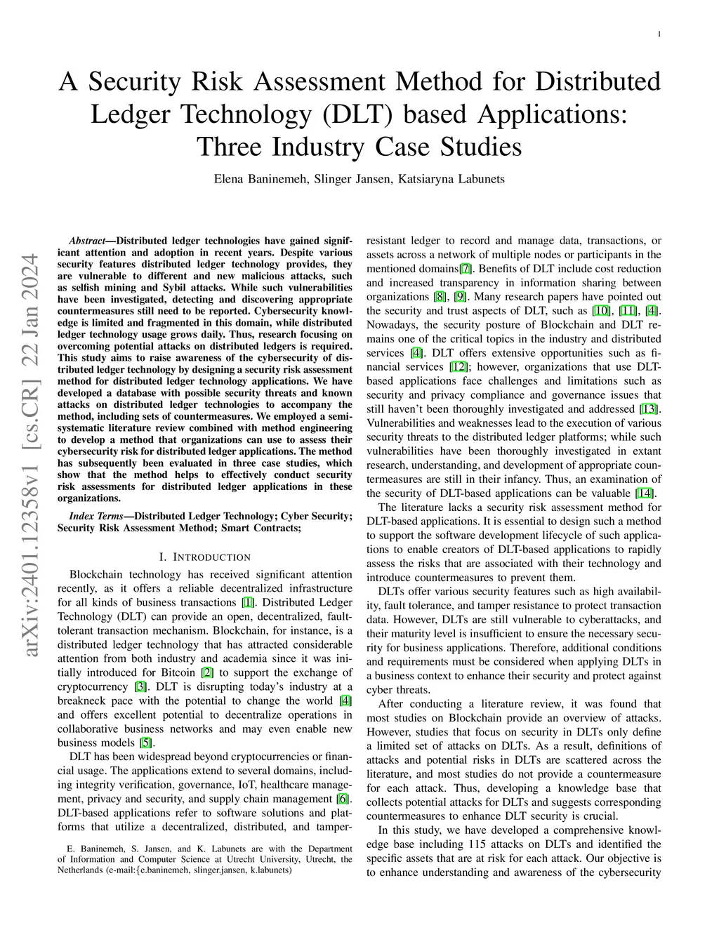 A Security Risk Assessment Method for Distributed Ledger Technology
