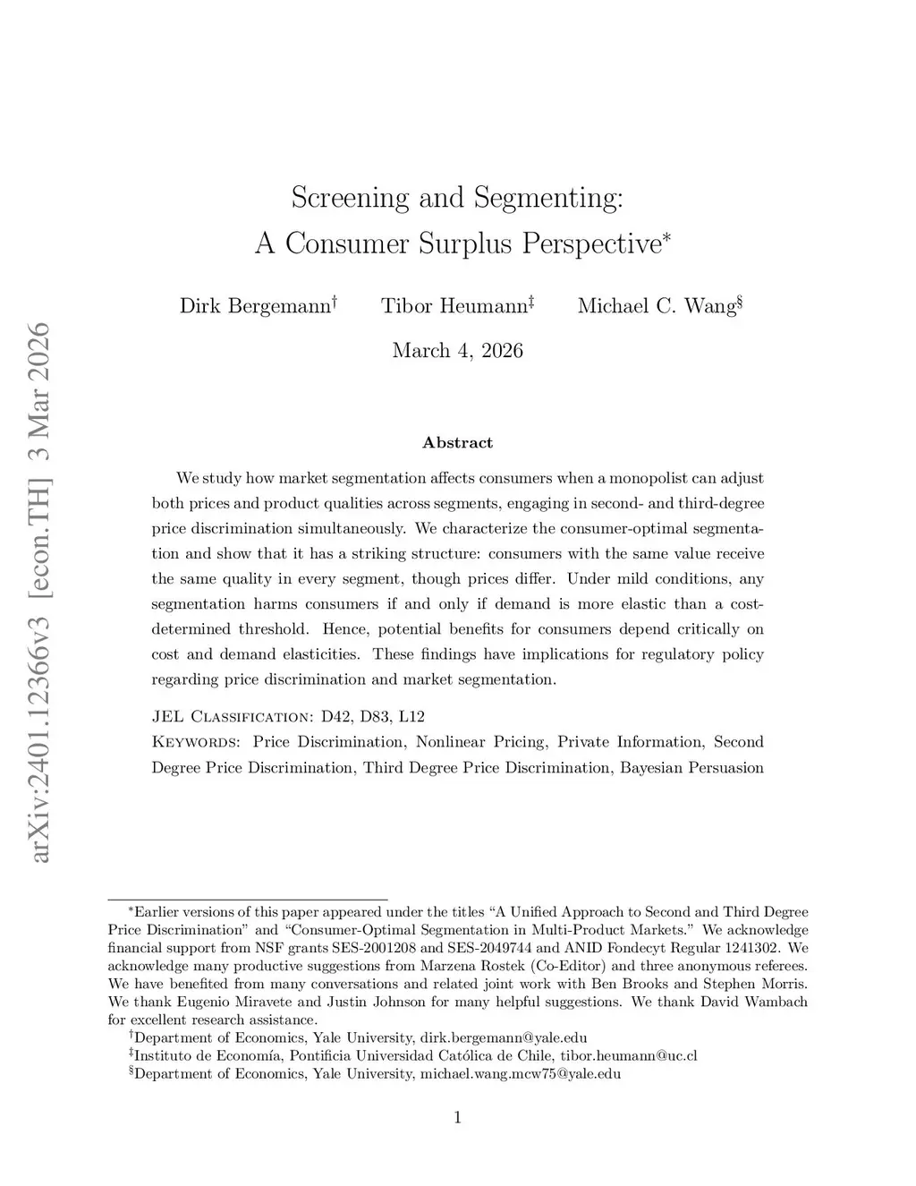 Screening and Segmenting: A Consumer Surplus Perspective
