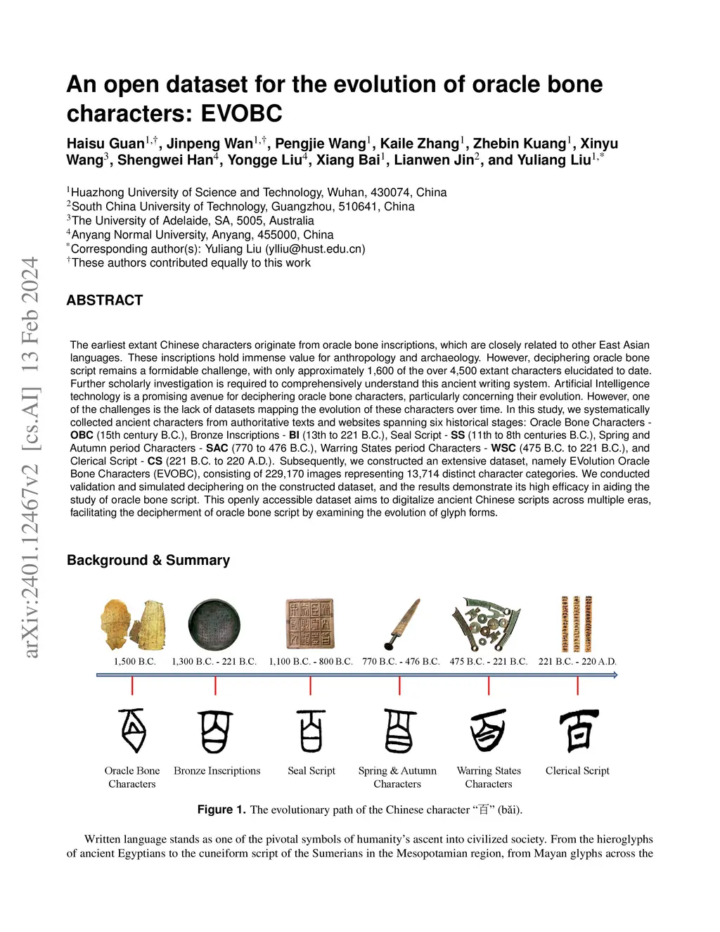 An open dataset for the evolution of oracle bone characters: EVOBC