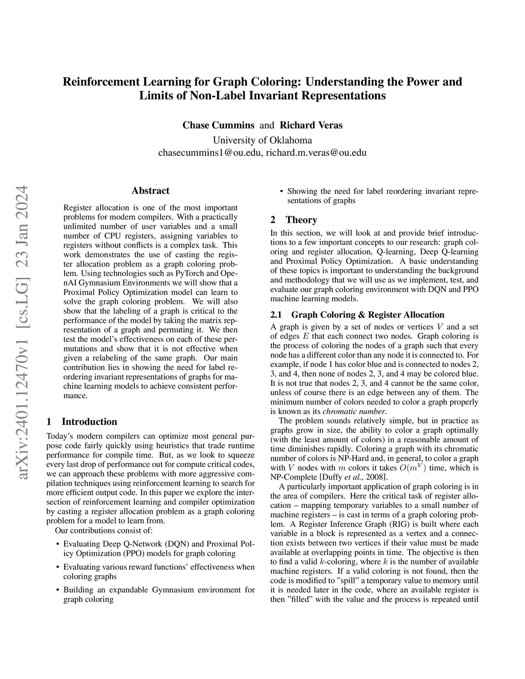 Register allocation is one of the most important problems for modern compilers. With a practically unlimited number of user variables and a small number of CPU registers, assigning variables to registers without conflicts is a complex task. This work demonstrates the use of casting the register allocation problem as a graph coloring problem. Using technologies such as PyTorch and OpenAI Gymnasium Environments we will show that a Proximal Policy Optimization model can learn to solve the graph coloring problem. We will also show that the labeling of a graph is critical to the performance of the model by taking the matrix representation of a graph and permuting it. We then test the model's effectiveness on each of these permutations and show that it is not effective when given a relabeling of the same graph. Our main contribution lies in showing the need for label reordering invariant representations of graphs for machine learning models to achieve consistent performance.