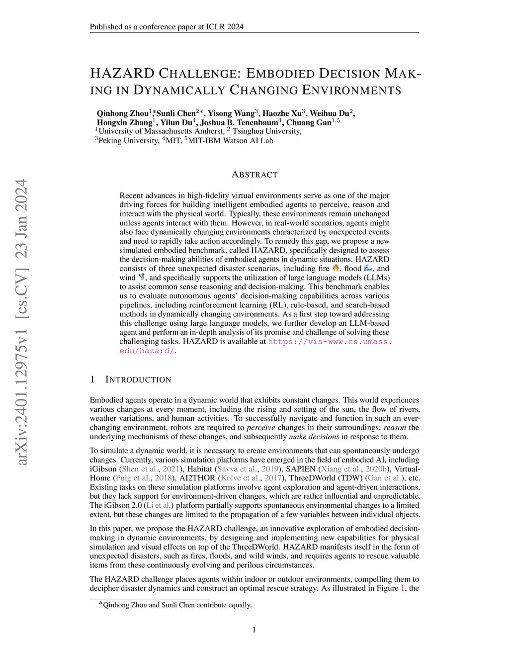 HAZARD Challenge: Embodied Decision Making in Dynamically Changing