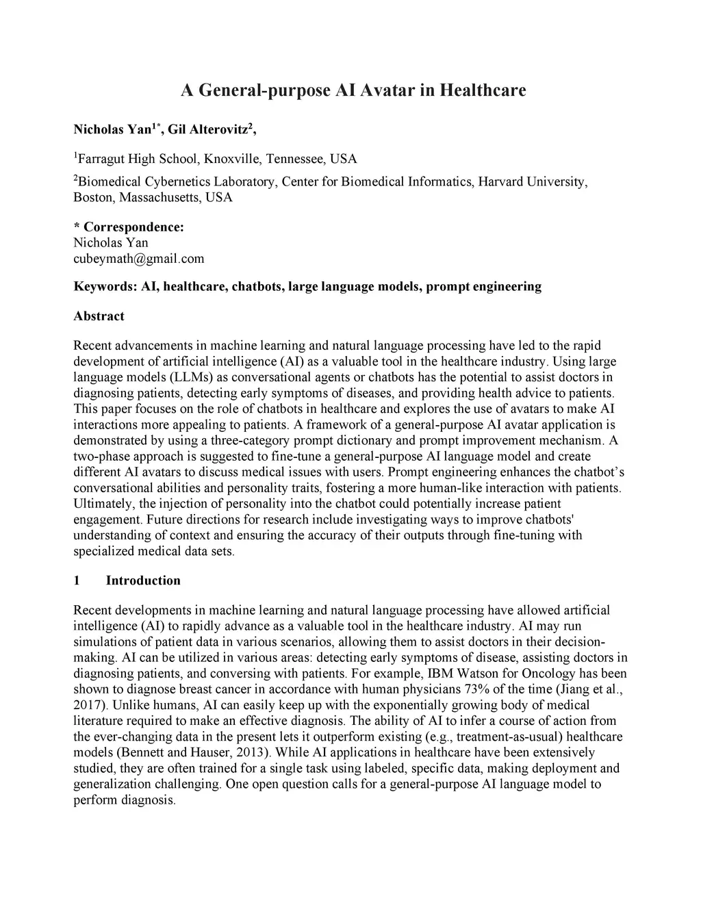 A General-purpose AI Avatar in Healthcare