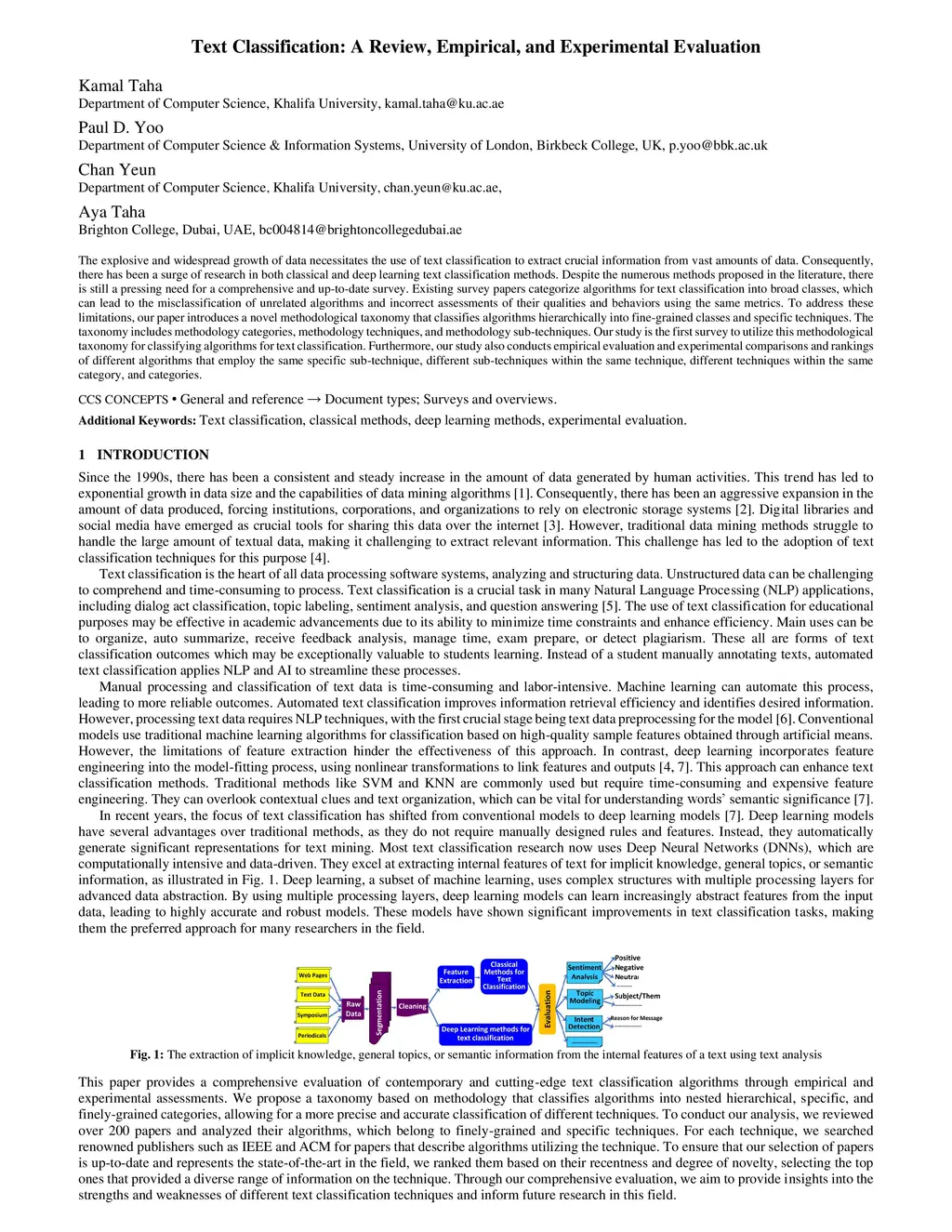 Text Classification: A Review, Empirical, and Experimental Evaluation