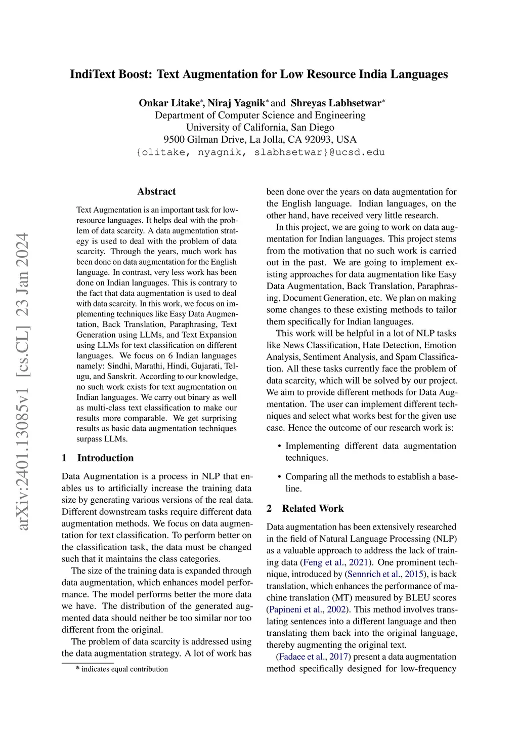 IndiText Boost: Text Augmentation for Low Resource India Languages