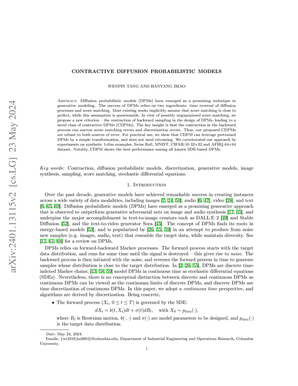 Diffusion probabilistic models (DPMs) have emerged as a promising technique in generative modeling. The success of DPMs relies on two ingredients: time reversal of diffusion processes and score matching. Most existing works implicitly assume that score matching is close to perfect, while this assumption is questionable. In view of possibly unguaranteed score matching, we propose a new criterion -- the contraction of backward sampling in the design of DPMs, leading to a novel class of contractive DPMs (CDPMs). The key insight is that the contraction in the backward process can narrow score matching errors and discretization errors. Thus, our proposed CDPMs are robust to both sources of error. For practical use, we show that CDPM can leverage pretrained DPMs by a simple transformation, and does not need retraining. We corroborated our approach by experiments on synthetic 1-dim examples, Swiss Roll, MNIST, CIFAR-10 3232 and AFHQ 6464 dataset. Notably, CDPM shows the best performance among all known SDE-based DPMs.