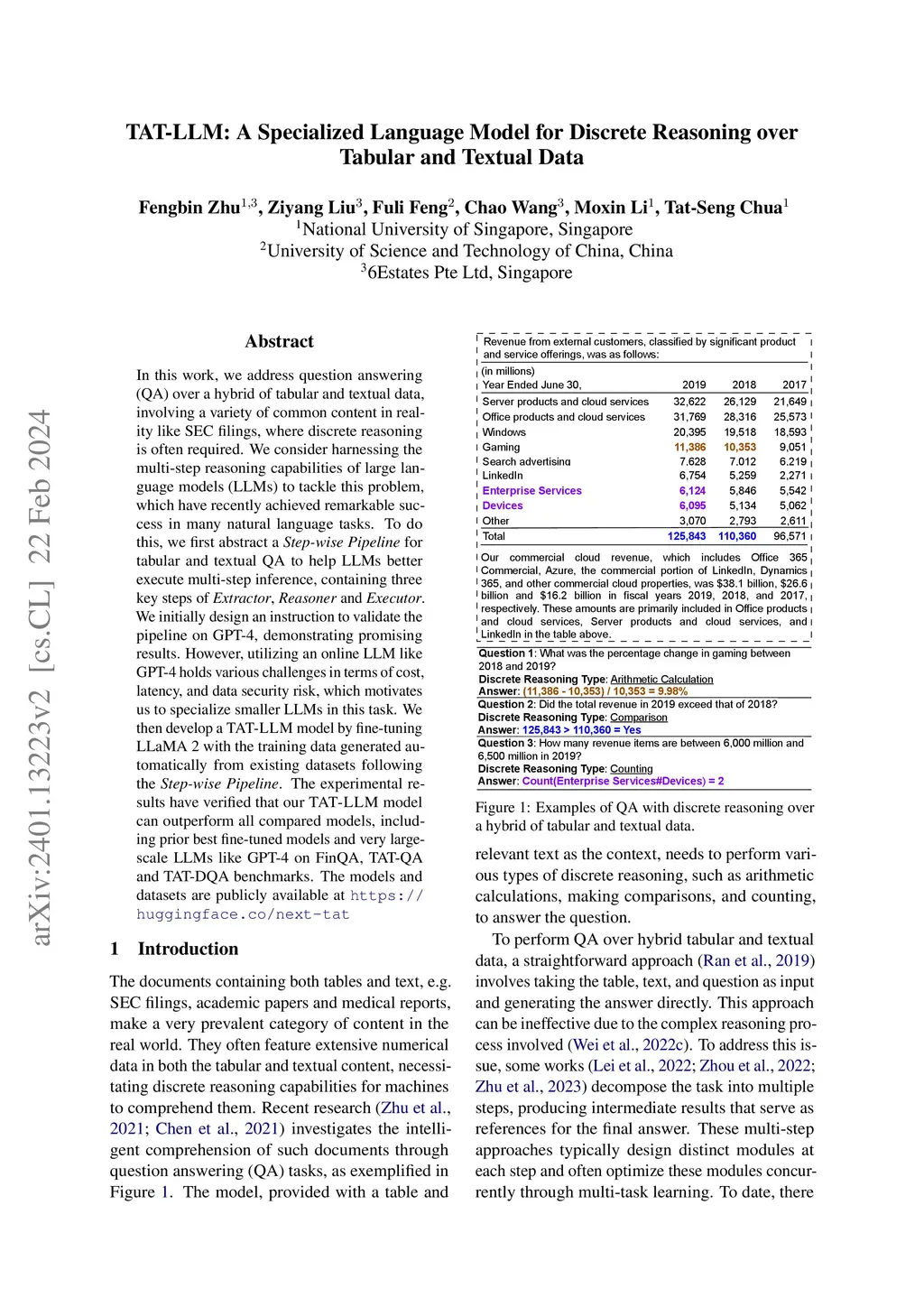 TAT-LLM: A Specialized Language Model for Discrete Reasoning over