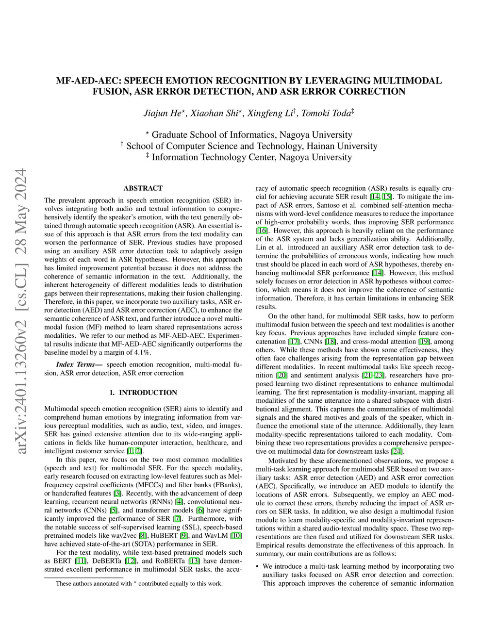MF-AED-AEC: Speech Emotion Recognition by Leveraging Multimodal Fusion,