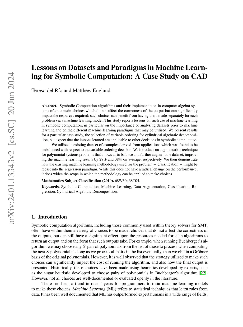 Symbolic Computation algorithms and their implementation in computer algebra systems often contain choices which do not affect the correctness of the output but can significantly impact the resources required: such choices can benefit from having them made separately for each problem via a machine learning model. This study reports lessons on such use of machine learning in symbolic computation, in particular on the importance of analysing datasets prior to machine learning and on the different machine learning paradigms that may be utilised. We present results for a particular case study, the selection of variable ordering for cylindrical algebraic decomposition, but expect that the lessons learned are applicable to other decisions in symbolic computation. We utilise an existing dataset of examples derived from applications which was found to be imbalanced with respect to the variable ordering decision. We introduce an augmentation technique for polynomial systems problems that allows us to balance and further augment the dataset, improving the machine learning results by 28\% and 38\% on average, respectively. We then demonstrate how the existing machine learning methodology used for the problem classification might be recast into the regression paradigm. While this does not have a radical change on the performance, it does widen the scope in which the methodology can be applied to make choices.