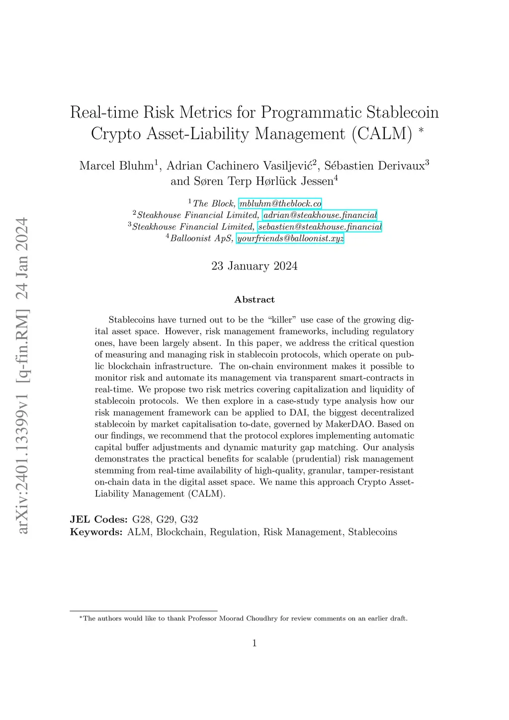 Stablecoins have turned out to be the "killer" use case of the growing digital asset space. However, risk management frameworks, including regulatory ones, have been largely absent. In this paper, we address the critical question of measuring and managing risk in stablecoin protocols, which operate on public blockchain infrastructure. The on-chain environment makes it possible to monitor risk and automate its management via transparent smart-contracts in real-time. We propose two risk metrics covering capitalization and liquidity of stablecoin protocols. We then explore in a case-study type analysis how our risk management framework can be applied to DAI, the biggest decentralized stablecoin by market capitalisation to-date, governed by MakerDAO. Based on our findings, we recommend that the protocol explores implementing automatic capital buffer adjustments and dynamic maturity gap matching. Our analysis demonstrates the practical benefits for scalable (prudential) risk management stemming from real-time availability of high-quality, granular, tamper-resistant on-chain data in the digital asset space. We name this approach Crypto Asset-Liability Management (CALM).