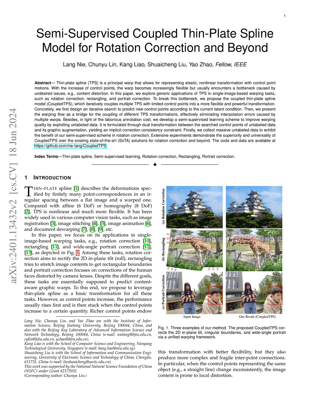 Semi-Supervised Coupled Thin-Plate Spline Model for Rotation Correction