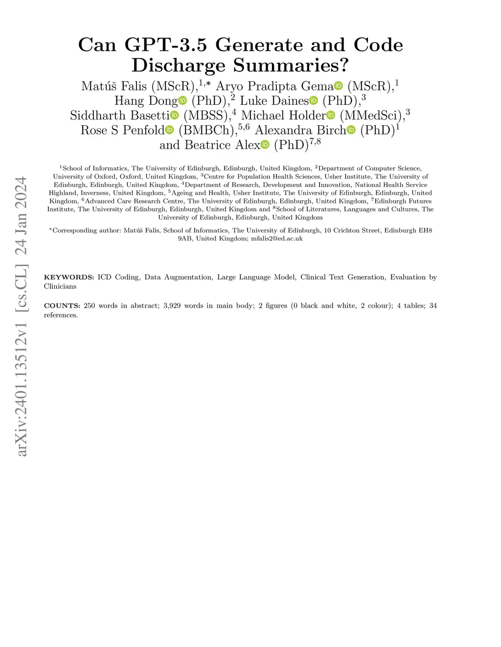 Can GPT-3.5 Generate and Code Discharge Summaries?