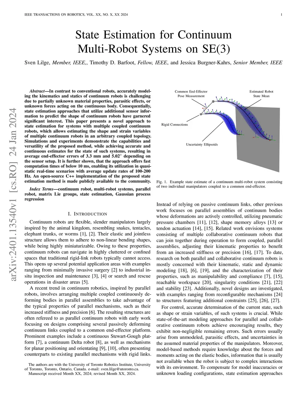 State Estimation for Continuum Multi-Robot Systems on SE(3)