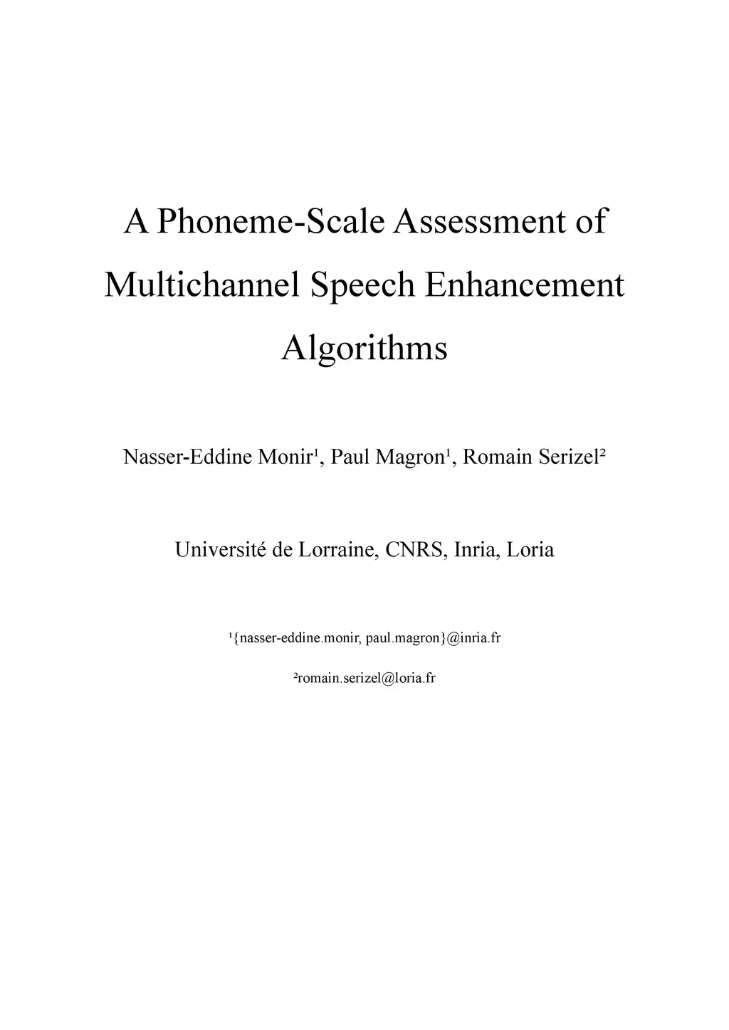 A Phoneme-Scale Assessment of Multichannel Speech Enhancement Algorithms
