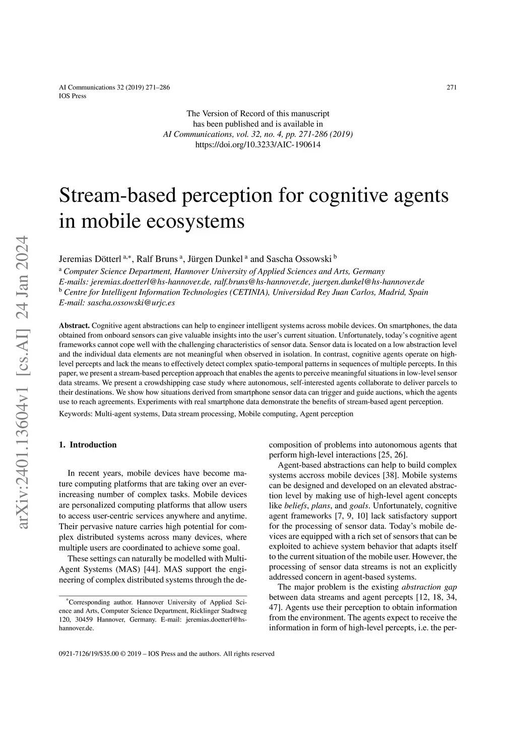 Stream-based perception for cognitive agents in mobile ecosystems