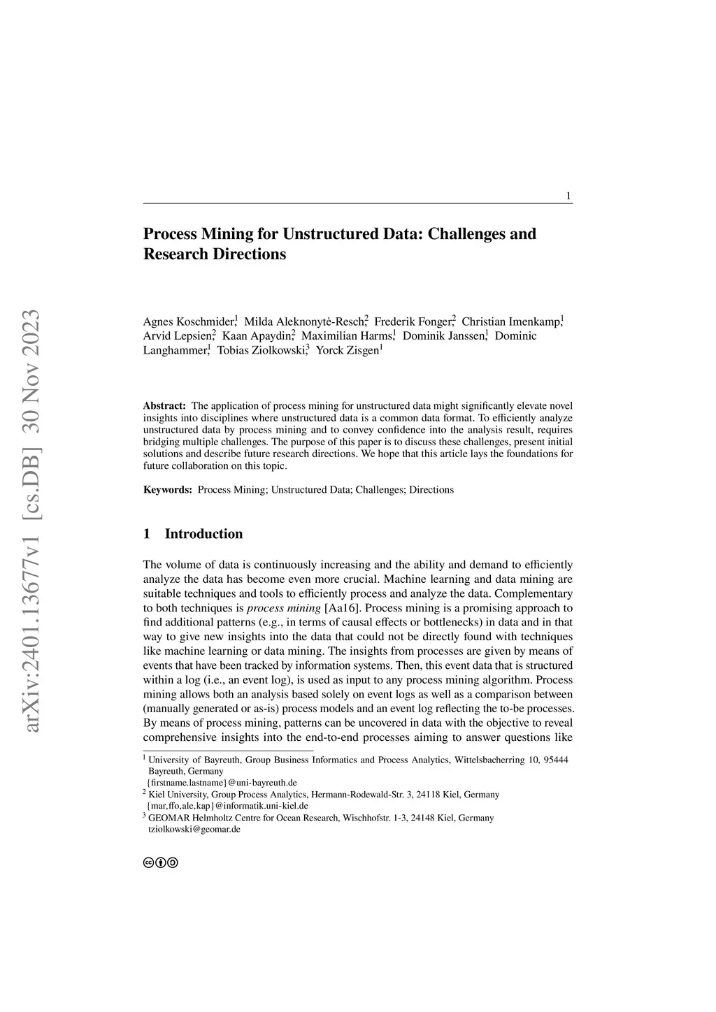 Process Mining for Unstructured Data: Challenges and Research Directions