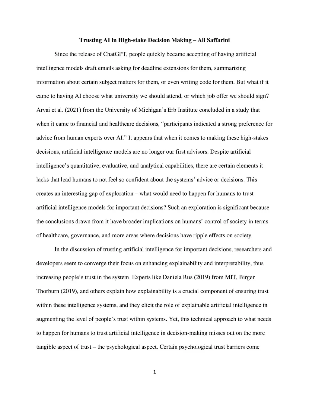 Trusting AI in High-stake Decision Making
