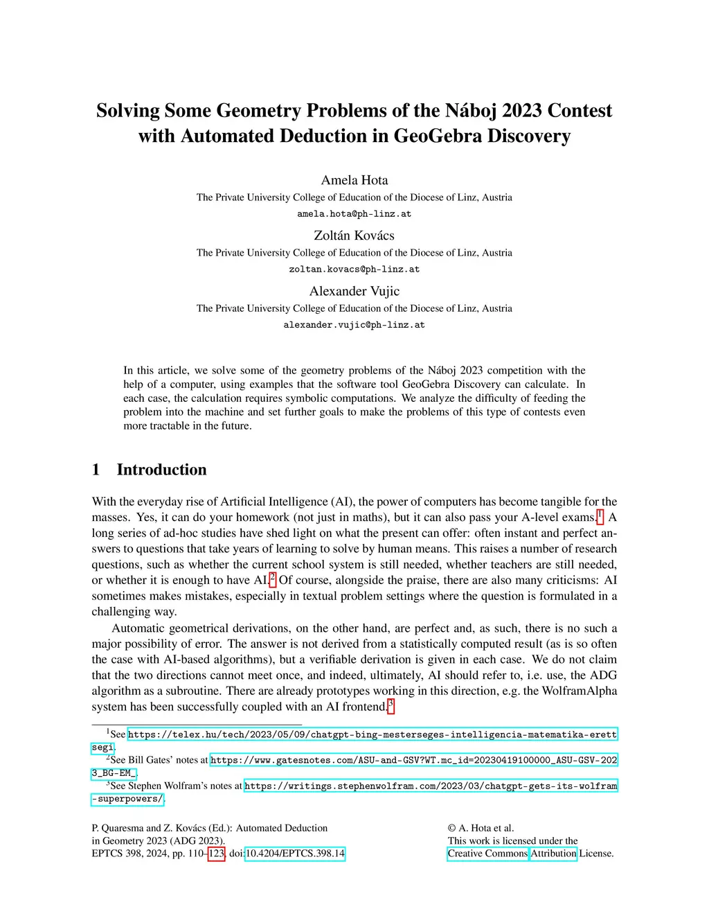 Solving Some Geometry Problems of the Náboj 2023 Contest with