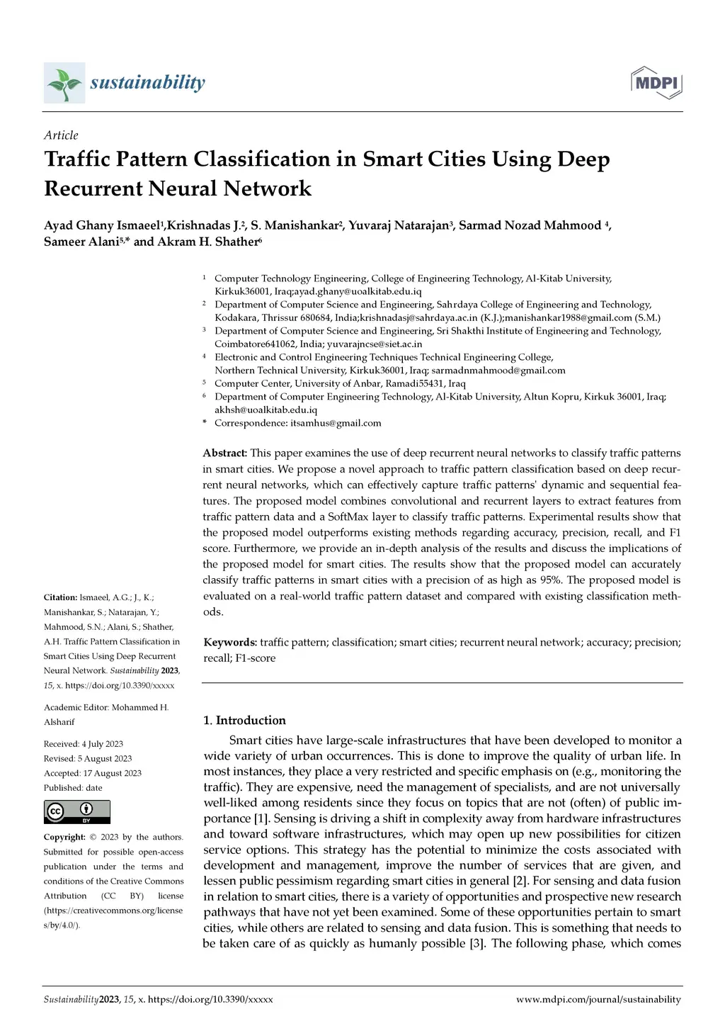 Traffic Pattern Classification in Smart Cities Using Deep Recurrent