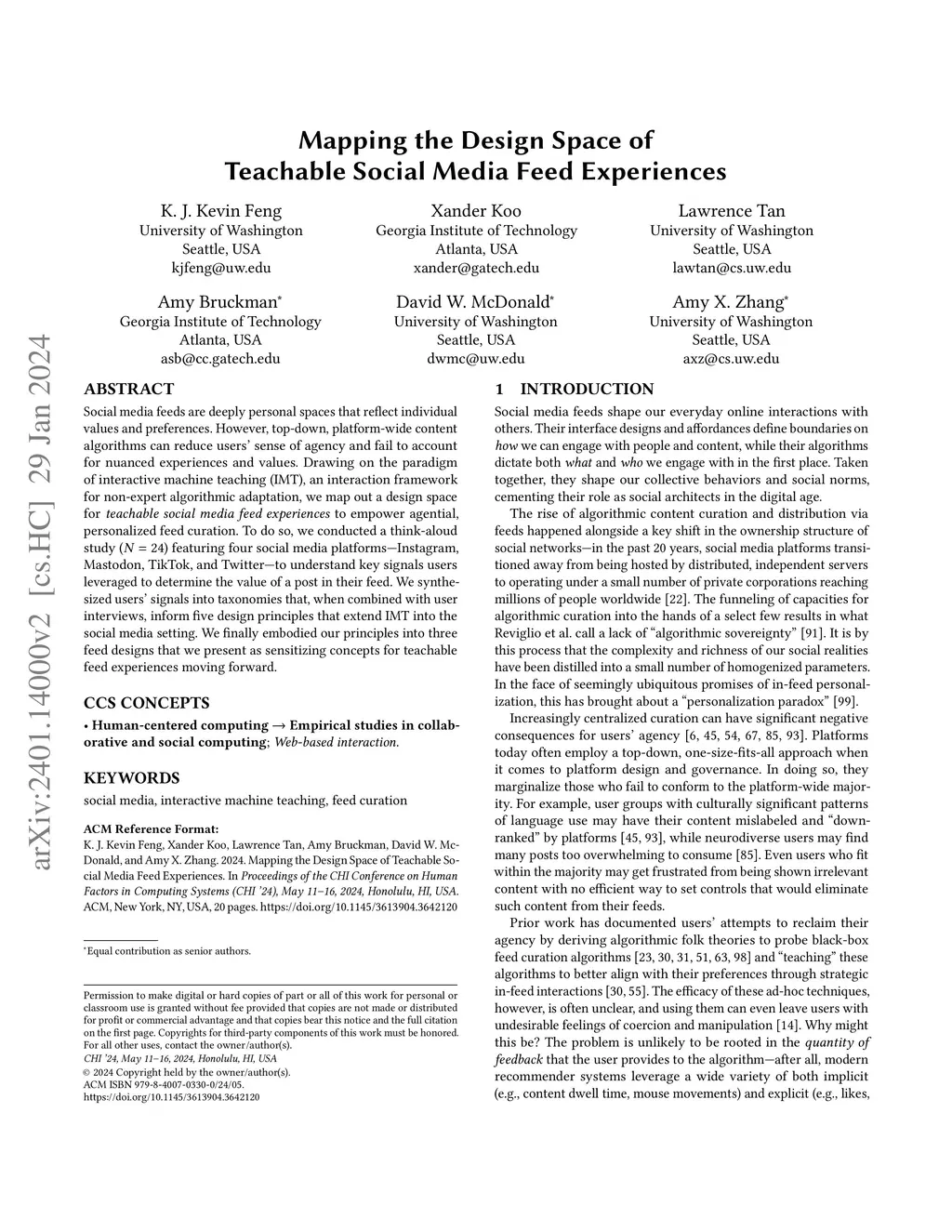 Mapping the Design Space of Teachable Social Media Feed Experiences