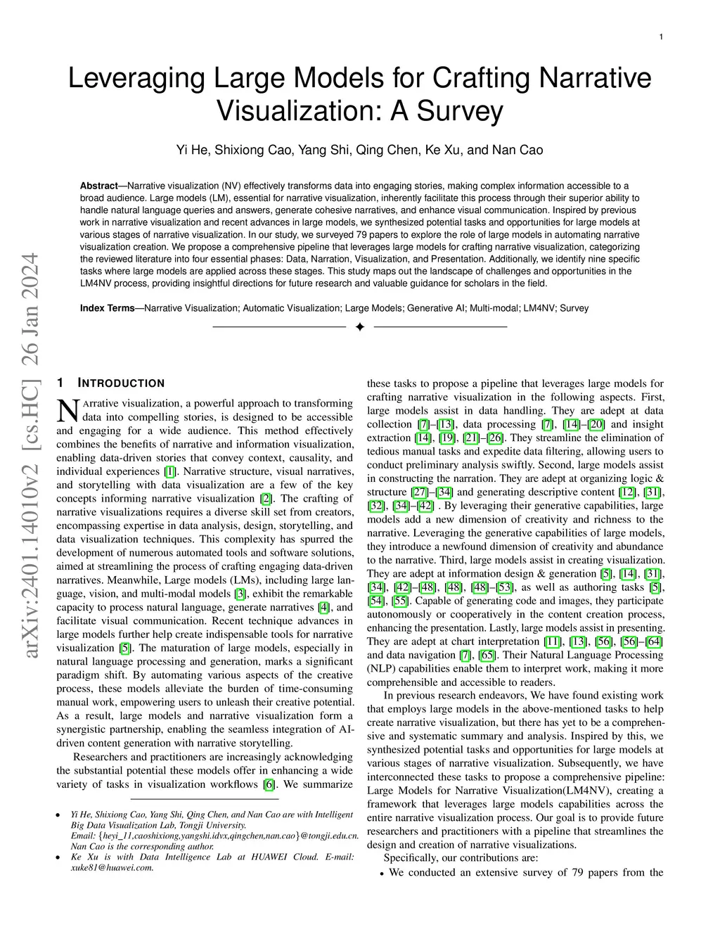 Leveraging Large Models for Crafting Narrative Visualization: A Survey