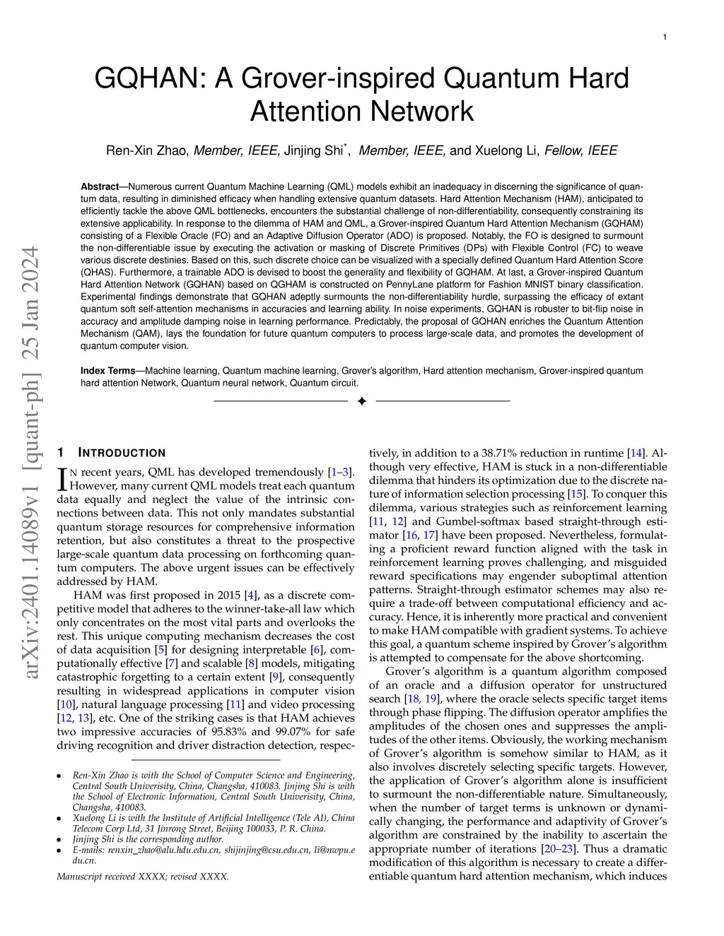 GQHAN: A Grover-inspired Quantum Hard Attention Network