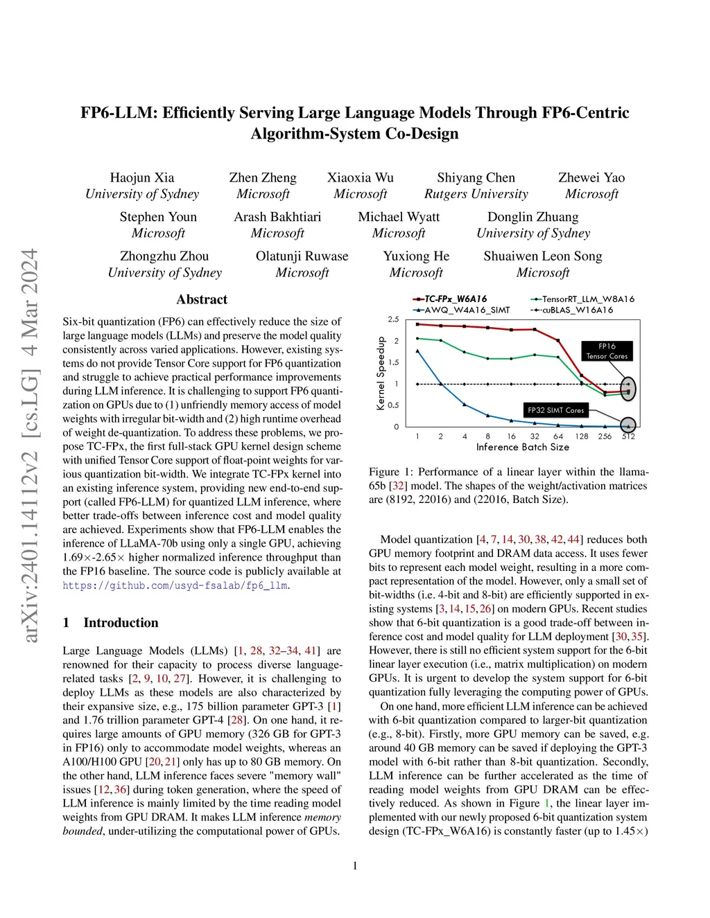 FP6-LLM: Efficiently Serving Large Language Models Through FP6-Centric