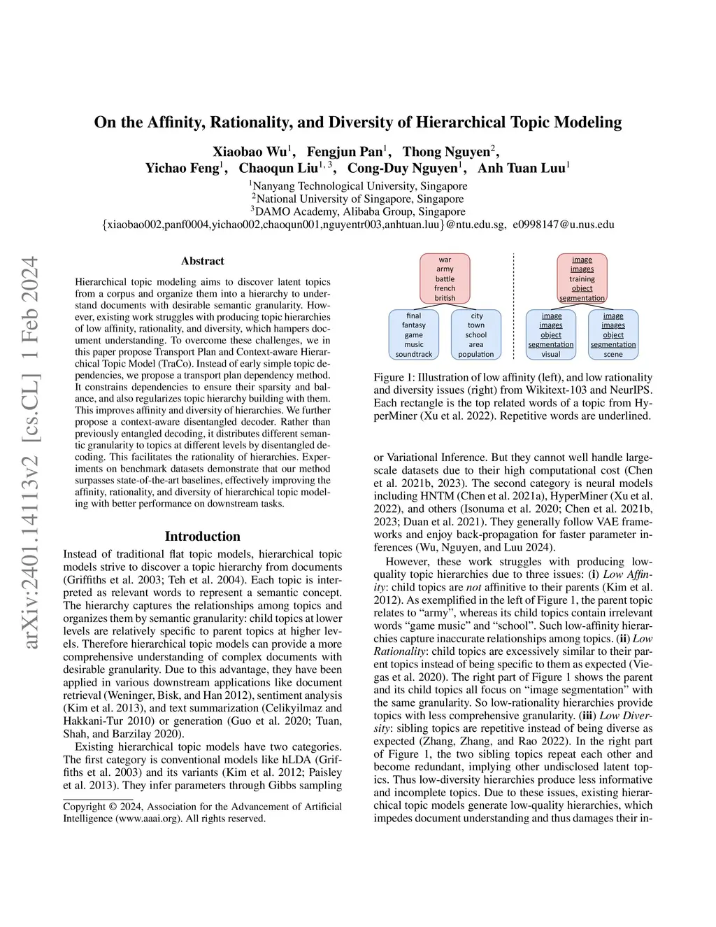 On the Affinity, Rationality, and Diversity of Hierarchical Topic Modeling
