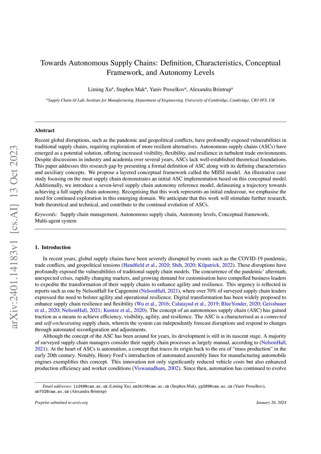 Towards Autonomous Supply Chains: Definition, Characteristics,