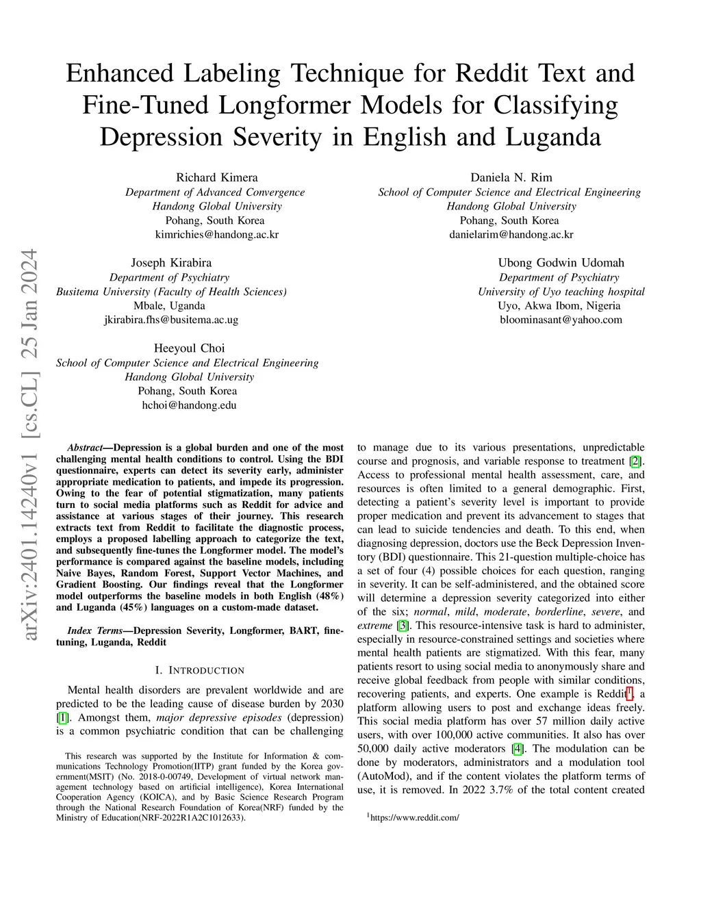 Depression is a global burden and one of the most challenging mental health conditions to control. Experts can detect its severity early using the Beck Depression Inventory (BDI) questionnaire, administer appropriate medication to patients, and impede its progression. Due to the fear of potential stigmatization, many patients turn to social media platforms like Reddit for advice and assistance at various stages of their journey. This research extracts text from Reddit to facilitate the diagnostic process. It employs a proposed labeling approach to categorize the text and subsequently fine-tunes the Longformer model. The model's performance is compared against baseline models, including Naive Bayes, Random Forest, Support Vector Machines, and Gradient Boosting. Our findings reveal that the Longformer model outperforms the baseline models in both English (48%) and Luganda (45%) languages on a custom-made dataset.