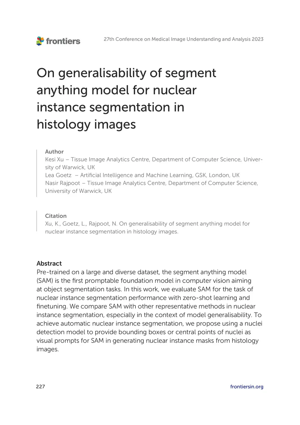 On generalisability of segment anything model for nuclear instance