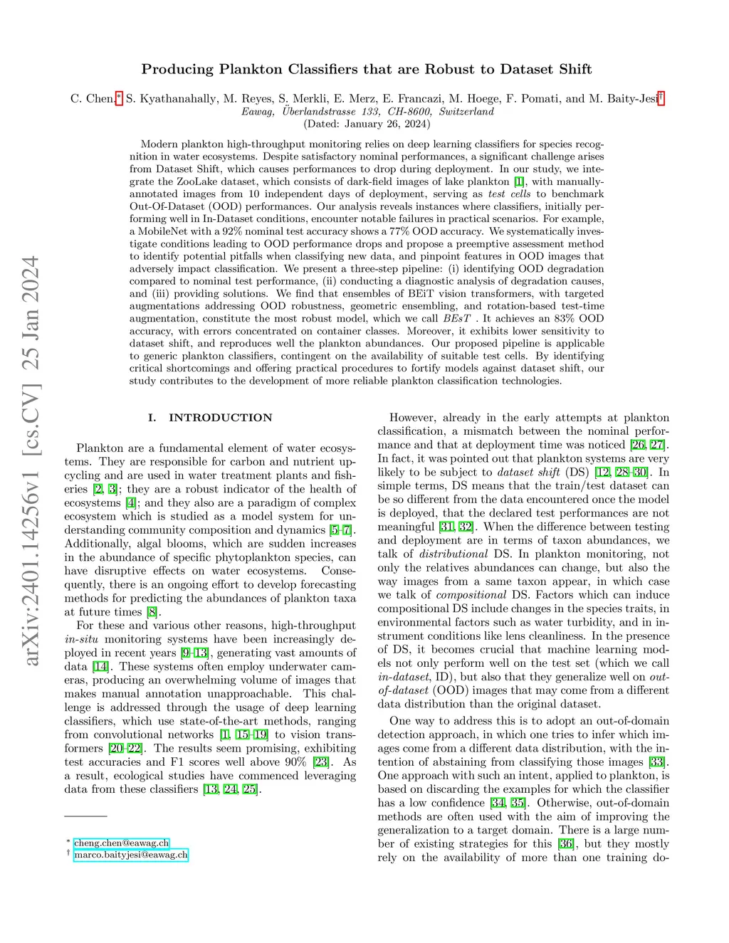 Modern plankton high-throughput monitoring relies on deep learning classifiers for species recognition in water ecosystems. Despite satisfactory nominal performances, a significant challenge arises from Dataset Shift, which causes performances to drop during deployment. In our study, we integrate the ZooLake dataset with manually-annotated images from 10 independent days of deployment, serving as test cells to benchmark Out-Of-Dataset (OOD) performances. Our analysis reveals instances where classifiers, initially performing well in In-Dataset conditions, encounter notable failures in practical scenarios. For example, a MobileNet with a 92% nominal test accuracy shows a 77% OOD accuracy. We systematically investigate conditions leading to OOD performance drops and propose a preemptive assessment method to identify potential pitfalls when classifying new data, and pinpoint features in OOD images that adversely impact classification. We present a three-step pipeline: (i) identifying OOD degradation compared to nominal test performance, (ii) conducting a diagnostic analysis of degradation causes, and (iii) providing solutions. We find that ensembles of BEiT vision transformers, with targeted augmentations addressing OOD robustness, geometric ensembling, and rotation-based test-time augmentation, constitute the most robust model, which we call BEsT model. It achieves an 83% OOD accuracy, with errors concentrated on container classes. Moreover, it exhibits lower sensitivity to dataset shift, and reproduces well the plankton abundances. Our proposed pipeline is applicable to generic plankton classifiers, contingent on the availability of suitable test cells. By identifying critical shortcomings and offering practical procedures to fortify models against dataset shift, our study contributes to the development of more reliable plankton classification technologies.