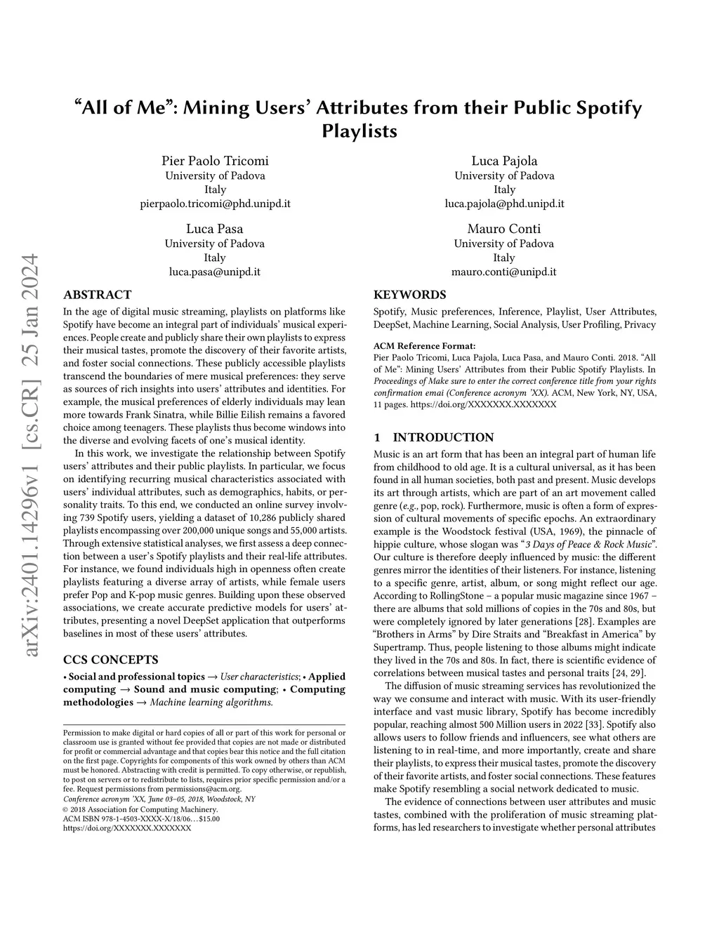"All of Me": Mining Users' Attributes from their Public Spotify Playlists