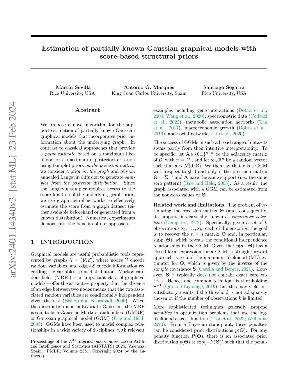 We propose a novel algorithm for the support estimation of partially known Gaussian graphical models that incorporates prior information about the underlying graph. In contrast to classical approaches that provide a point estimate based on a maximum likelihood or a maximum a posteriori criterion using (simple) priors on the precision matrix, we consider a prior on the graph and rely on annealed Langevin diffusion to generate samples from the posterior distribution. Since the Langevin sampler requires access to the score function of the underlying graph prior, we use graph neural networks to effectively estimate the score from a graph dataset (either available beforehand or generated from a known distribution). Numerical experiments demonstrate the benefits of our approach.