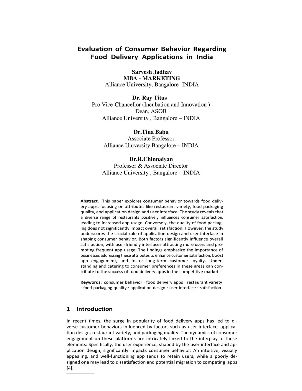 . This paper explores consumer behavior towards food delivery apps, focusing on attributes like restaurant variety, food packaging quality, and application design and user interface. The study reveals that a diverse range of restaurants positively influences consumer satisfaction, leading to increased app usage. Conversely, the quality of food packaging does not significantly impact overall satisfaction. However, the study underscores the crucial role of application design and user interface in shaping consumer behavior. Both factors significantly influence overall satisfaction, with user-friendly interfaces attracting more users and promoting frequent app usage. The findings emphasize the importance of businesses addressing these attributes to enhance customer satisfaction, boost app engagement, and foster long-term customer loyalty. Understanding and catering to consumer preferences in these areas can contribute to the success of food delivery apps in the competitive market.