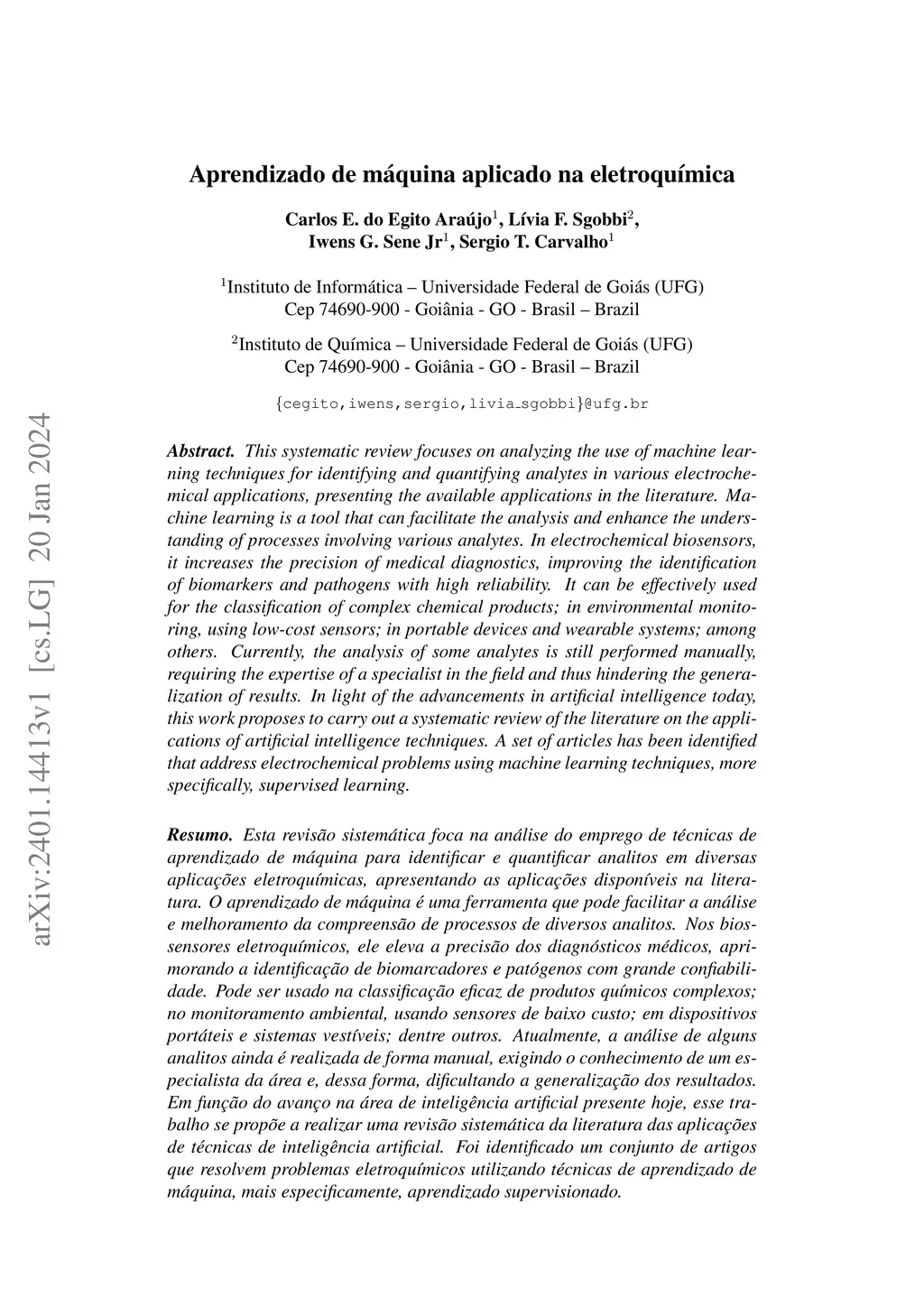 This systematic review focuses on analyzing the use of machine learning techniques for identifying and quantifying analytes in various electrochemical applications, presenting the available applications in the literature. Machine learning is a tool that can facilitate the analysis and enhance the understanding of processes involving various analytes. In electrochemical biosensors, it increases the precision of medical diagnostics, improving the identification of biomarkers and pathogens with high reliability. It can be effectively used for the classification of complex chemical products; in environmental monitoring, using low-cost sensors; in portable devices and wearable systems; among others. Currently, the analysis of some analytes is still performed manually, requiring the expertise of a specialist in the field and thus hindering the generalization of results. In light of the advancements in artificial intelligence today, this work proposes to carry out a systematic review of the literature on the applications of artificial intelligence techniques. A set of articles has been identified that address electrochemical problems using machine learning techniques, more specifically, supervised learning.