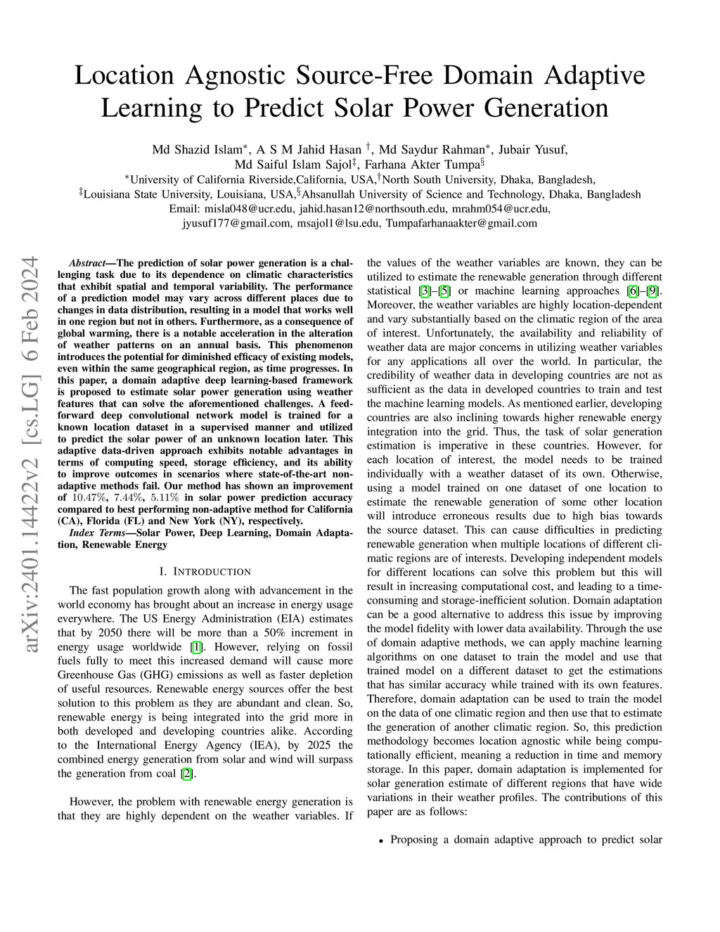 Location Agnostic Source-Free Domain Adaptive Learning to Predict Solar