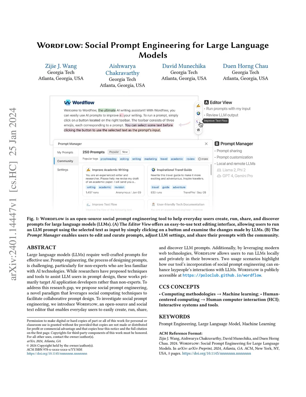Large language models (LLMs) require well-crafted prompts for effective use. Prompt engineering, the process of designing prompts, is challenging, particularly for non-experts who are less familiar with AI technologies. While researchers have proposed techniques and tools to assist LLM users in prompt design, these works primarily target AI application developers rather than non-experts. To address this research gap, we propose social prompt engineering, a novel paradigm that leverages social computing techniques to facilitate collaborative prompt design. To investigate social prompt engineering, we introduce Wordflow, an open-source and social text editor that enables everyday users to easily create, run, share, and discover LLM prompts. Additionally, by leveraging modern web technologies, Wordflow allows users to run LLMs locally and privately in their browsers. Two usage scenarios highlight how social prompt engineering and our tool can enhance laypeople's interaction with LLMs. Wordflow is publicly accessible at https://poloclub.github.io/wordflow.