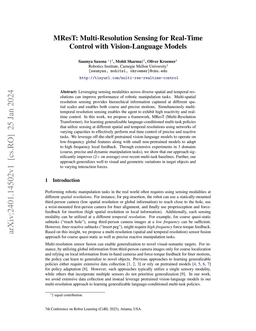 MResT: Multi-Resolution Sensing for Real-Time Control with
