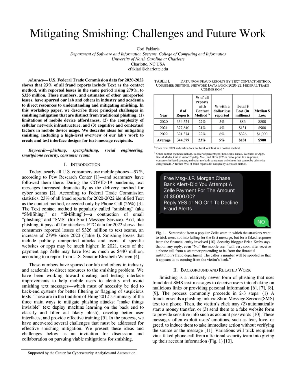 This paper describes three principal challenges in smishing mitigation - limitations of device affordances, complexity of infrastructure, and cognitive and contextual factors of mobile device use. We give a high-level overview of ideas that can mitigate smishing and work around these challenges.