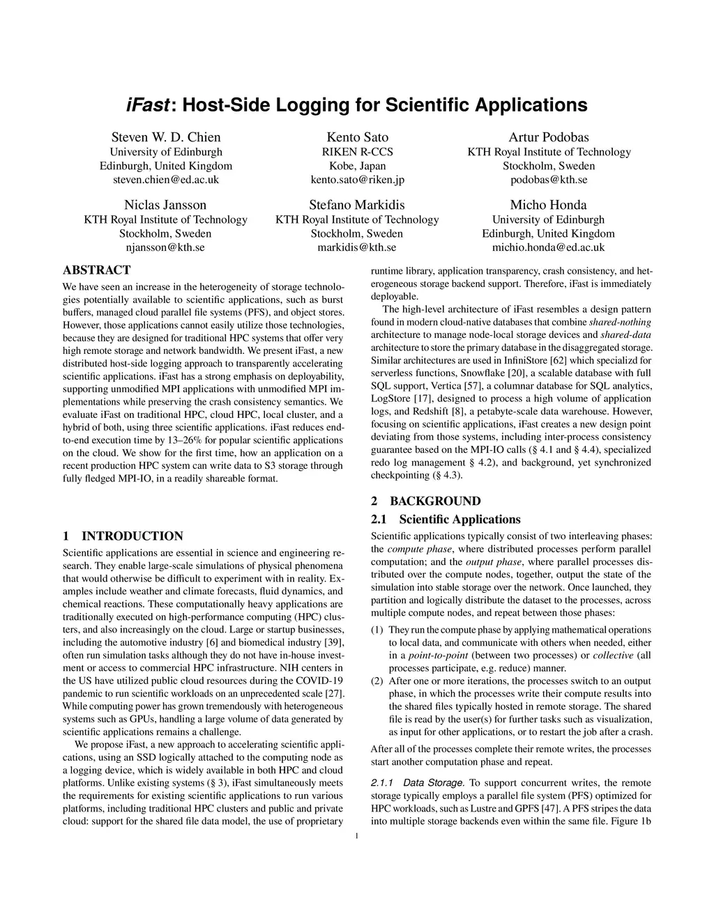 The ability to handle a large volume of data generated by scientific applications is crucial. We have seen an increase in the heterogeneity of storage technologies available to scientific applications, such as burst buffers, local temporary block storage, managed cloud parallel file systems (PFS), and non-POSIX object stores. However, scientific applications designed for traditional HPC systems can not easily exploit those storage systems due to cost, throughput, and programming model challenges. We present iFast, a new library-level approach to transparently accelerating scientific applications based on MPI-IO. It decouples application I/O, data caching, and data storage to support heterogeneous storage models. Design decisions of iFast are based on a strong emphasis on deployability. It is highly general with only MPI as a core dependency, allowing users to run unmodified MPI-based applications with unmodified MPI implementations - even proprietary ones like IntelMPI and Cray MPICH. Our approach supports a wide range of networked storage, including traditional PFS, ordinary NFS, and S3-based cloud storage. Unlike previous approaches, iFast ensures crash consistency even across compute nodes. We demonstrate iFast in cloud HPC platform, small local cluster, and hybrid of both to show its generality. Our results show that iFast reduces end-to-end execution time by 13-26% for three popular scientific applications on the cloud. It also outperforms the state-of-the-art system, SymphonyFS, a filesystem-based approach for similar goals but without crash consistency, by 12-23%.