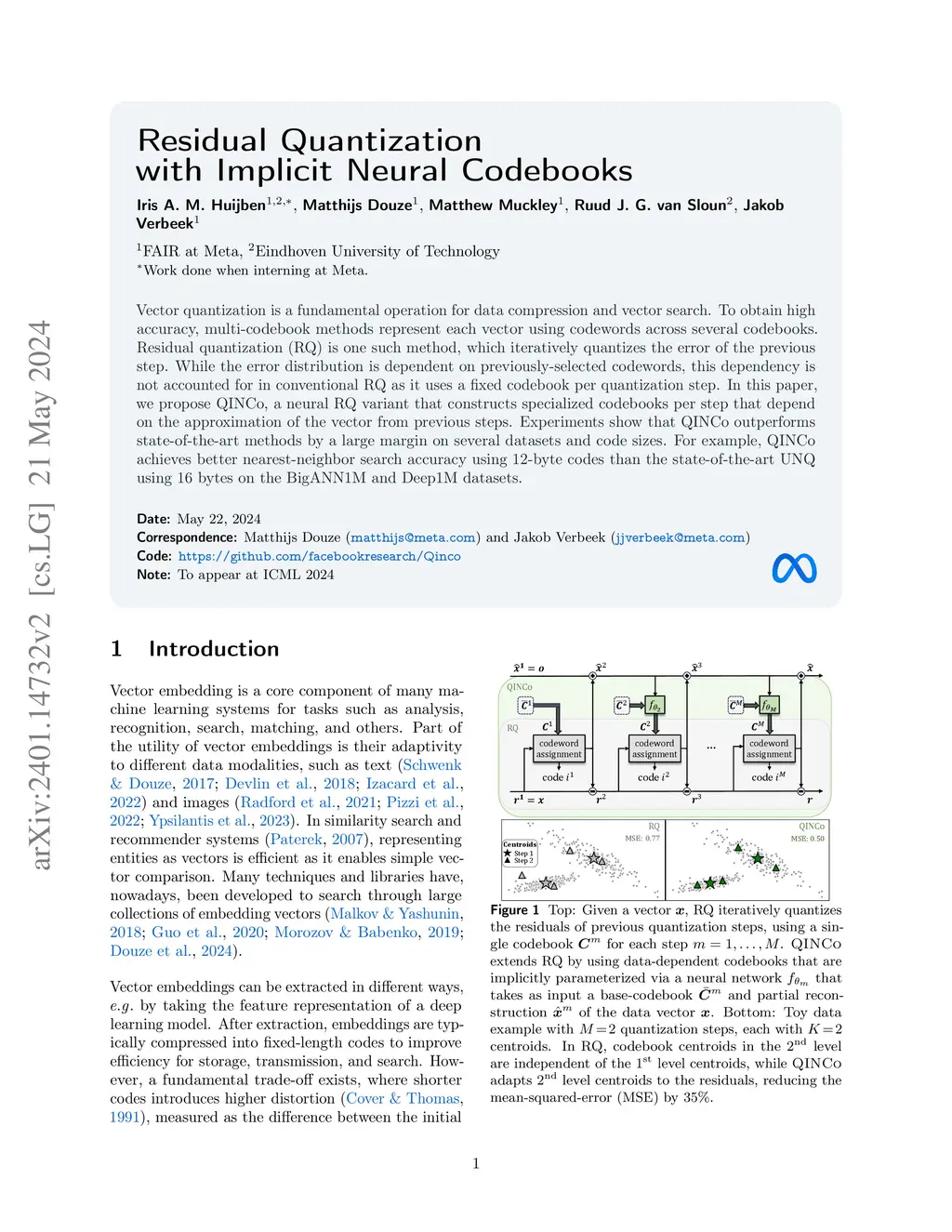 Vector quantization is a fundamental operation for data compression and vector search. To obtain high accuracy, multi-codebook methods represent each vector using codewords across several codebooks. Residual quantization (RQ) is one such method, which iteratively quantizes the error of the previous step. While the error distribution is dependent on previously-selected codewords, this dependency is not accounted for in conventional RQ as it uses a fixed codebook per quantization step. In this paper, we propose QINCo, a neural RQ variant that constructs specialized codebooks per step that depend on the approximation of the vector from previous steps. Experiments show that QINCo outperforms state-of-the-art methods by a large margin on several datasets and code sizes. For example, QINCo achieves better nearest-neighbor search accuracy using 12-byte codes than the state-of-the-art UNQ using 16 bytes on the BigANN1M and Deep1M datasets.